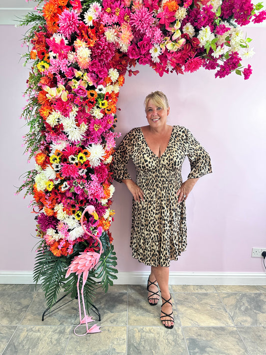 Cream Bold Floral Print One Shoulder Cut Out Pleated Midi Dress