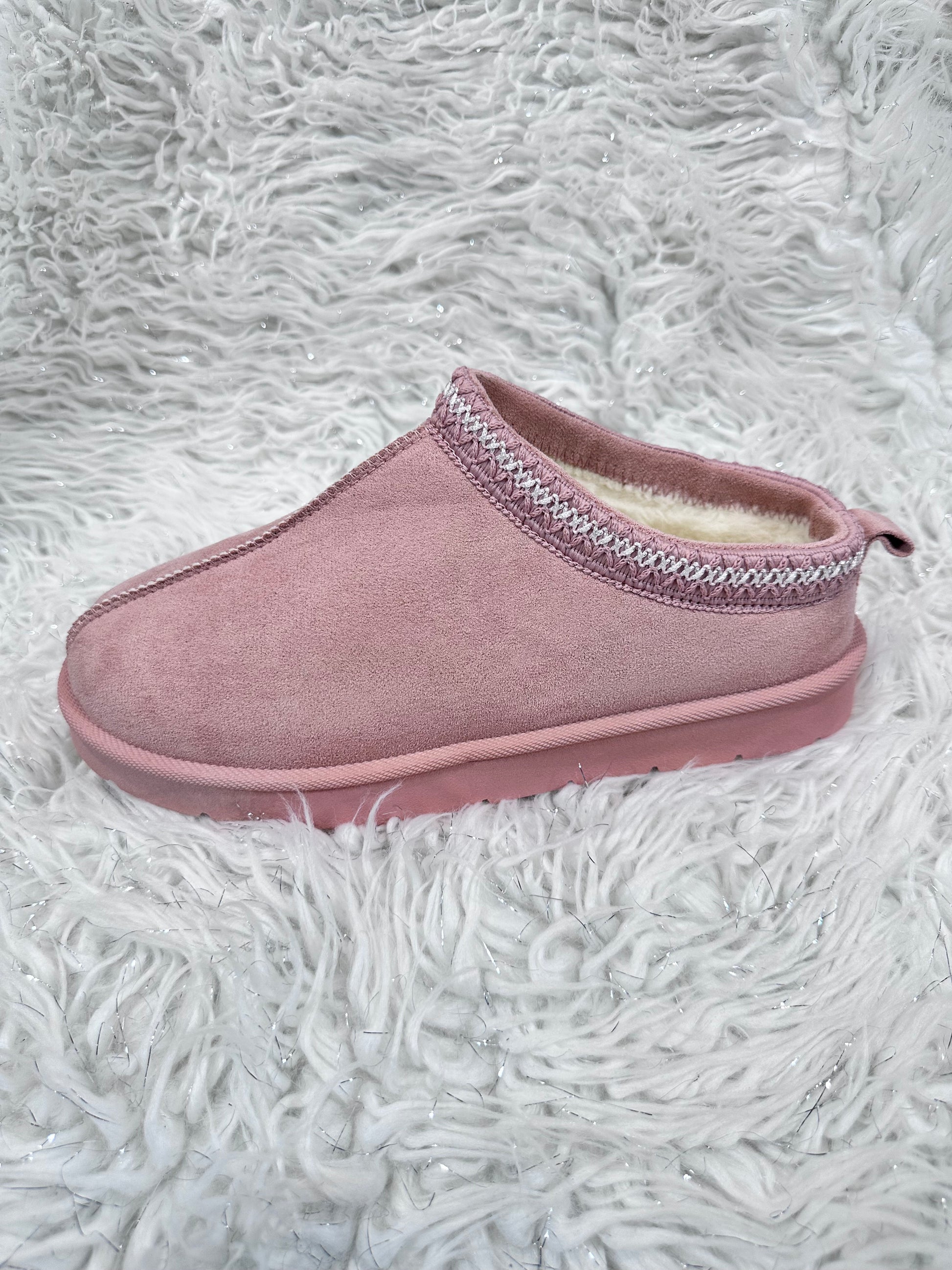 Introducing Kids Snugs – the fearless footwear that refuses to play it safe. Inspired by the iconic comfort of Uggs, these pastel pink slip-on mules pack serious style with a plush fleece lining that keeps little feet cosy all day long. The solid sole provides reliable grip and durability, while the embroidered edge detail adds an unexpected edge to this classic silhouette. Perfect for kids who want comfort without compromising on attitude.