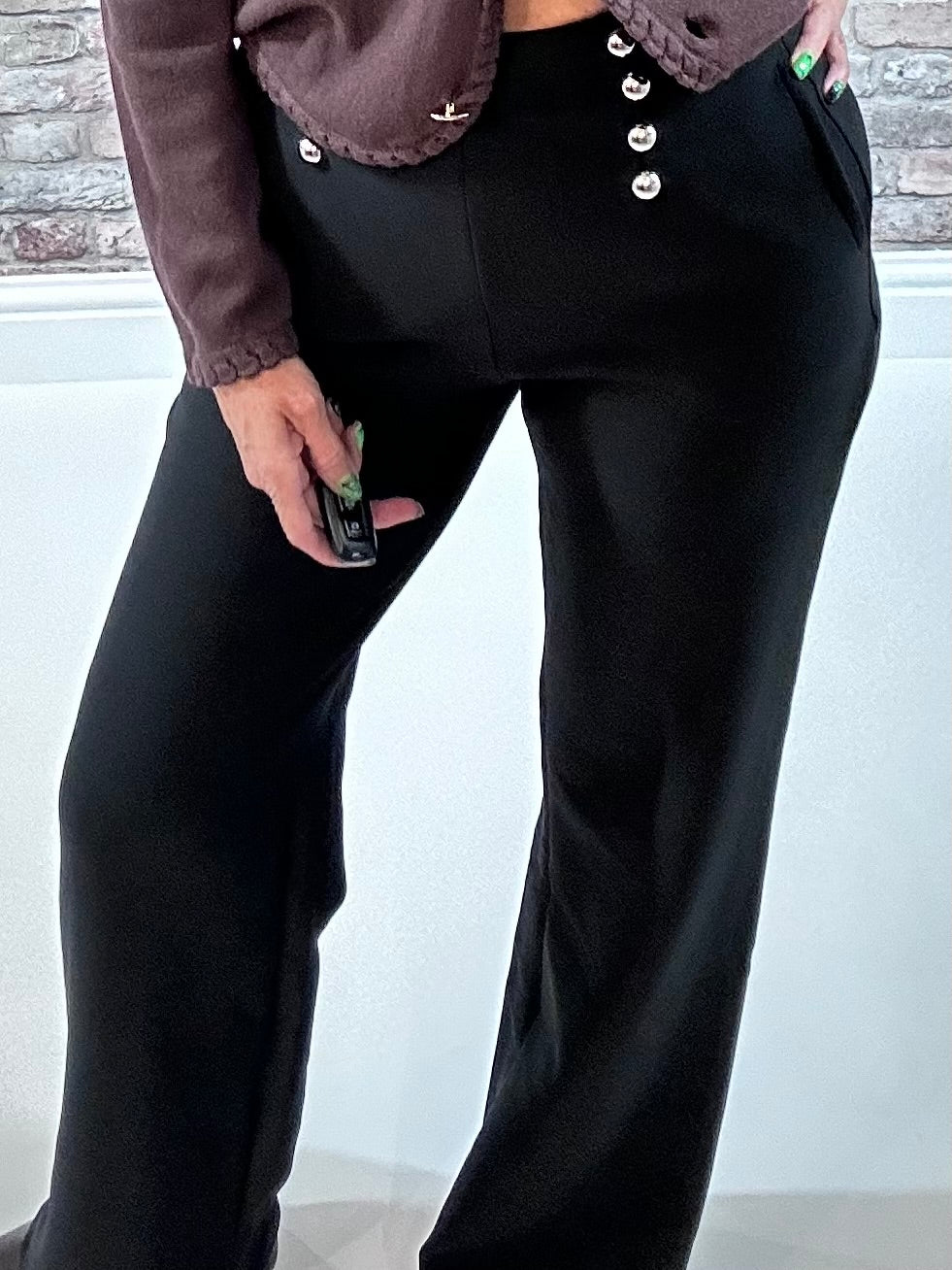 Elevate your style with the Suki Scuba trousers—bold wide-leg silhouette crafted from stretchy scuba fabric for a sleek, comfortable fit. Pull-on design ensures effortless wear, while subtle button details and handy pockets add edgy sophistication. Perfect for making a daring statement anywhere you go.