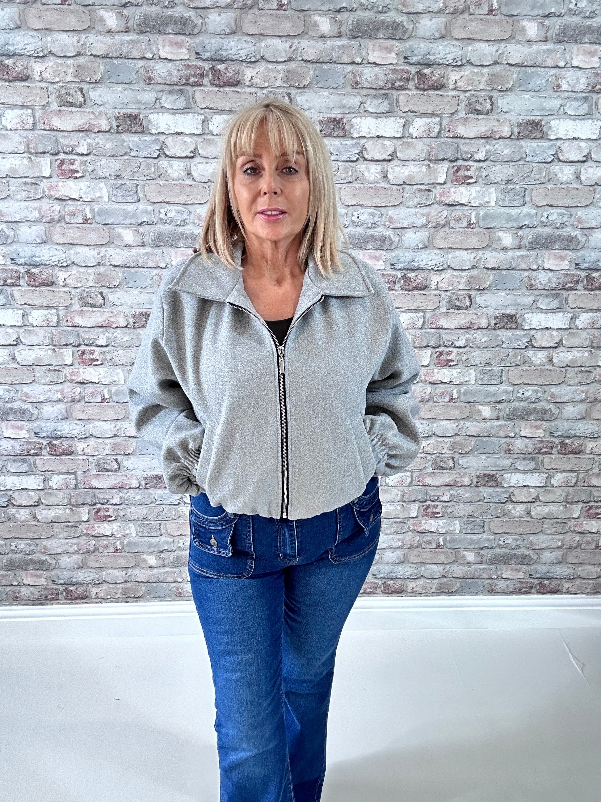 Elevate your outerwear with the ZaZa collar jacket, designed to turn heads. Featuring a bold collar, elasticated waistband, hemline, and cuffs for a perfectly fitted silhouette. A sleek zip fastening enhances its edgy appeal, while practical pockets and a smooth lining ensure comfort and functionality. Make a fearless statement every time you step out.